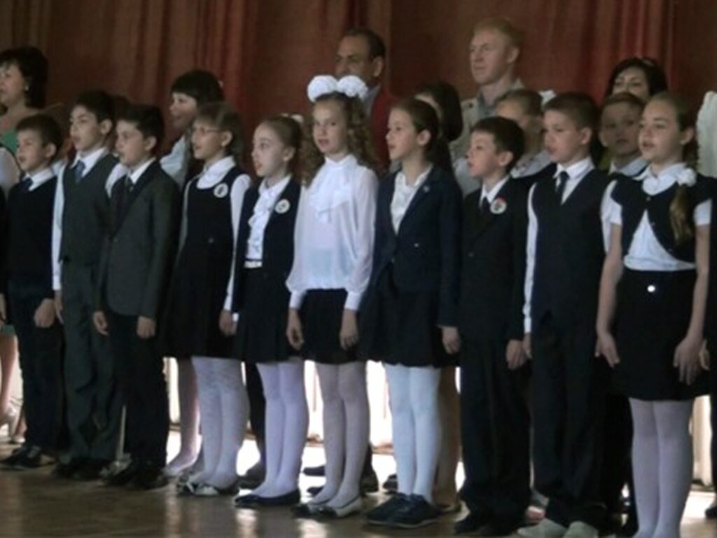 Презентация книги об учителях - участниках Великой Отечественной войны "Урок, длинною в жизнь". Детский хор исполняет песню "День Победы"